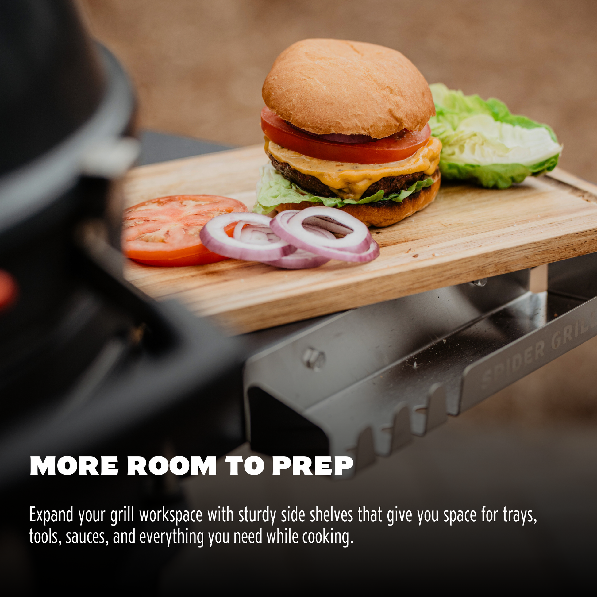 Expand your cooking space with the Huntsman™ Side Shelves — a premium side shelf system designed for the 22-inch Regular Huntsman™ grill and WebCraft™ Cooking System. Built for durability and seamless integration, these shelves add convenient prep space and smart storage right where you need it while cooking.