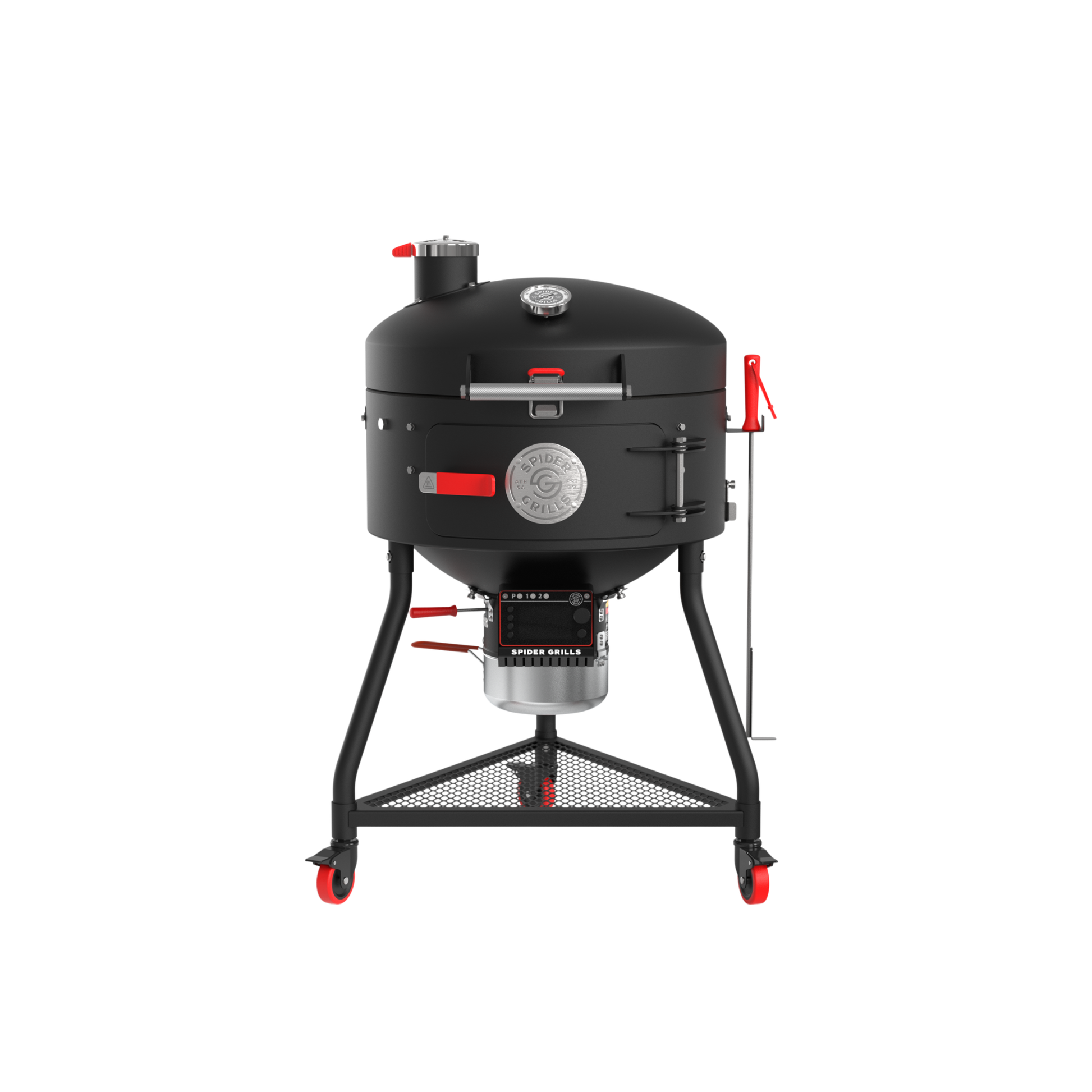Built from heavy-gauge steel and powered by Spider’s patented automated kettle technology, The Huntsman™ smart kettle kamado grill and smoker delivers the bold flavor of real charcoal cooking with the control, consistency, and confidence of modern precision.